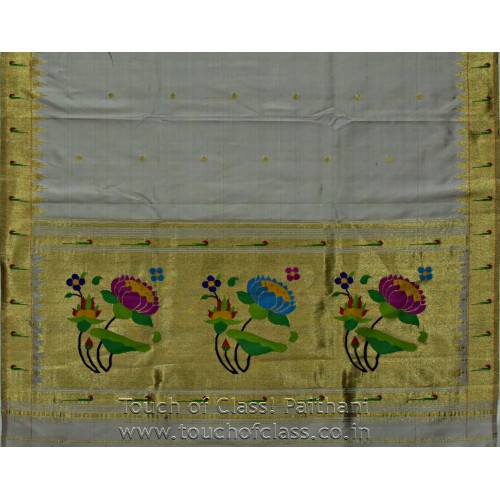 TOC-7840 Paithani Muniya Border All Over Dupatta/Stole Color: Gold Tissue on Off White Base (M..