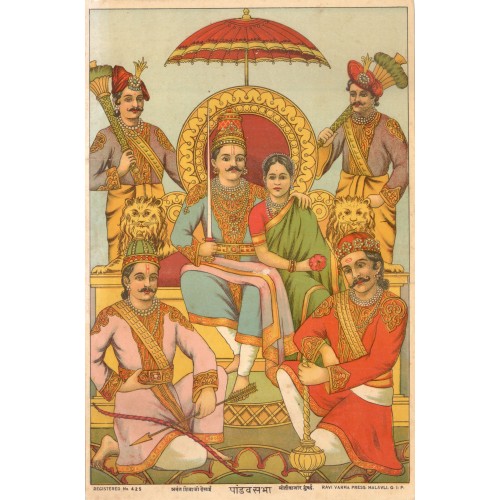 Tags: Raja Ravi Varma, Lithograph, Oleograph, Print, Antique, Vintage, Pandavsabha