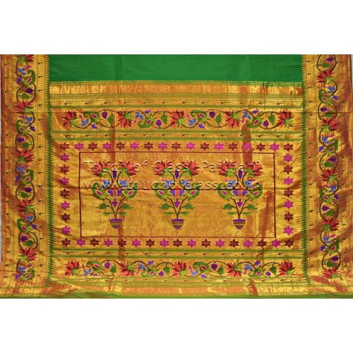 Intricate and Outstanding Delicate Paisley Rose Vine Brocade Paithani Saree