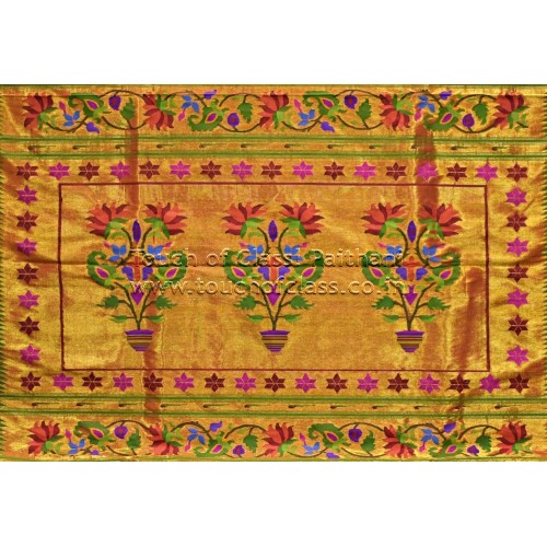 Material: Very Fine Grade Natural Mulberry Silk & Fine Zari with Gold Plating